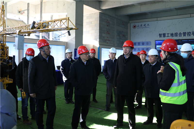 濟南漢峪金融商務中心B01項目進行積極踐行智慧建造理念,深入推廣BIM+智慧工地,在人員管理、視頻監控、危大工程監管、物料管理、綠色施工等方面探索數字化轉型,創新安全、質量、科技管理,積極爭創山東省三星智慧工地典型案11月28日,山東省住建廳王玉志廳長帶隊調研了本項目,濟南市委常委、副市長任慶虎等領導陪同調研。王玉志廳長項目智慧工地建設給予肯定,并提出了指導意見。